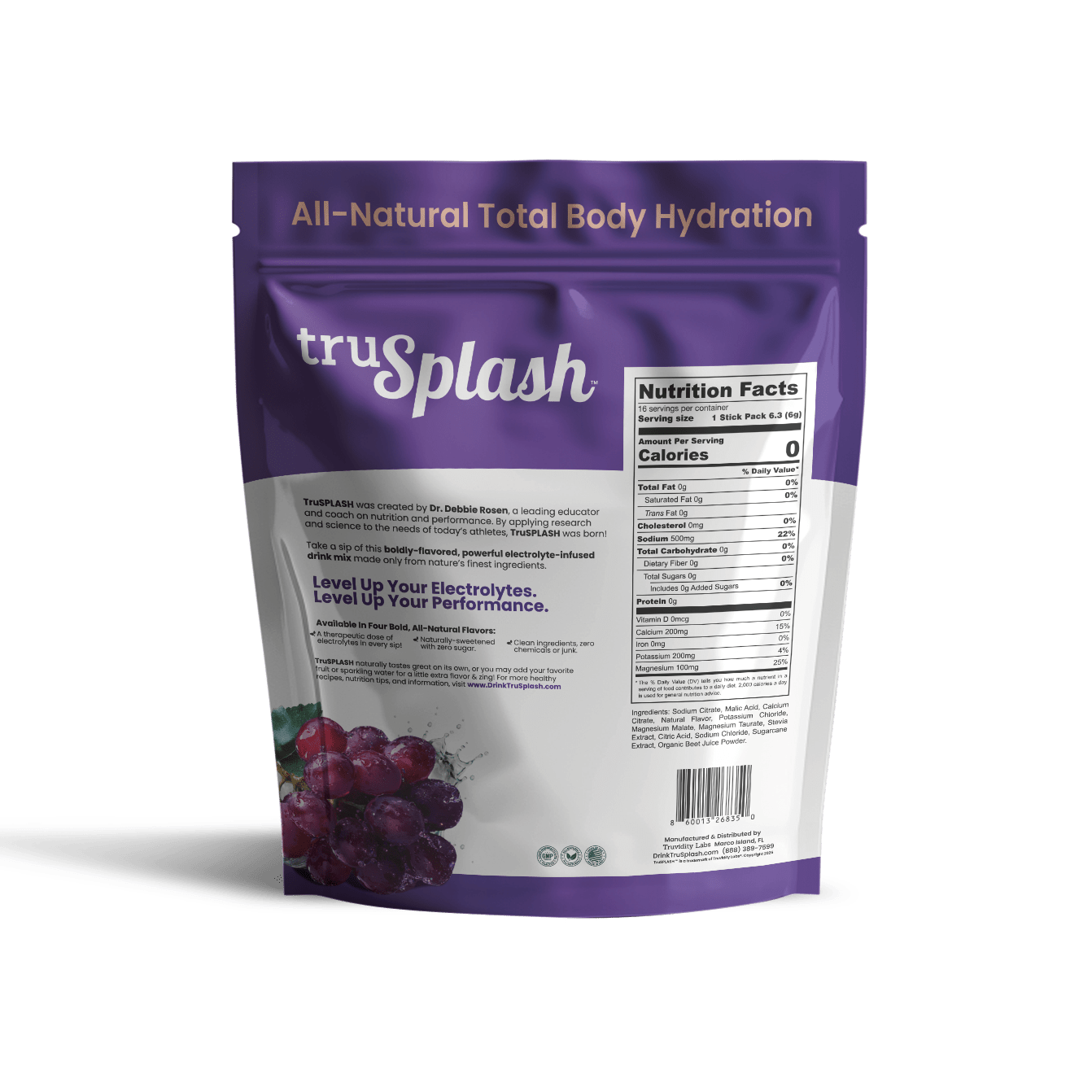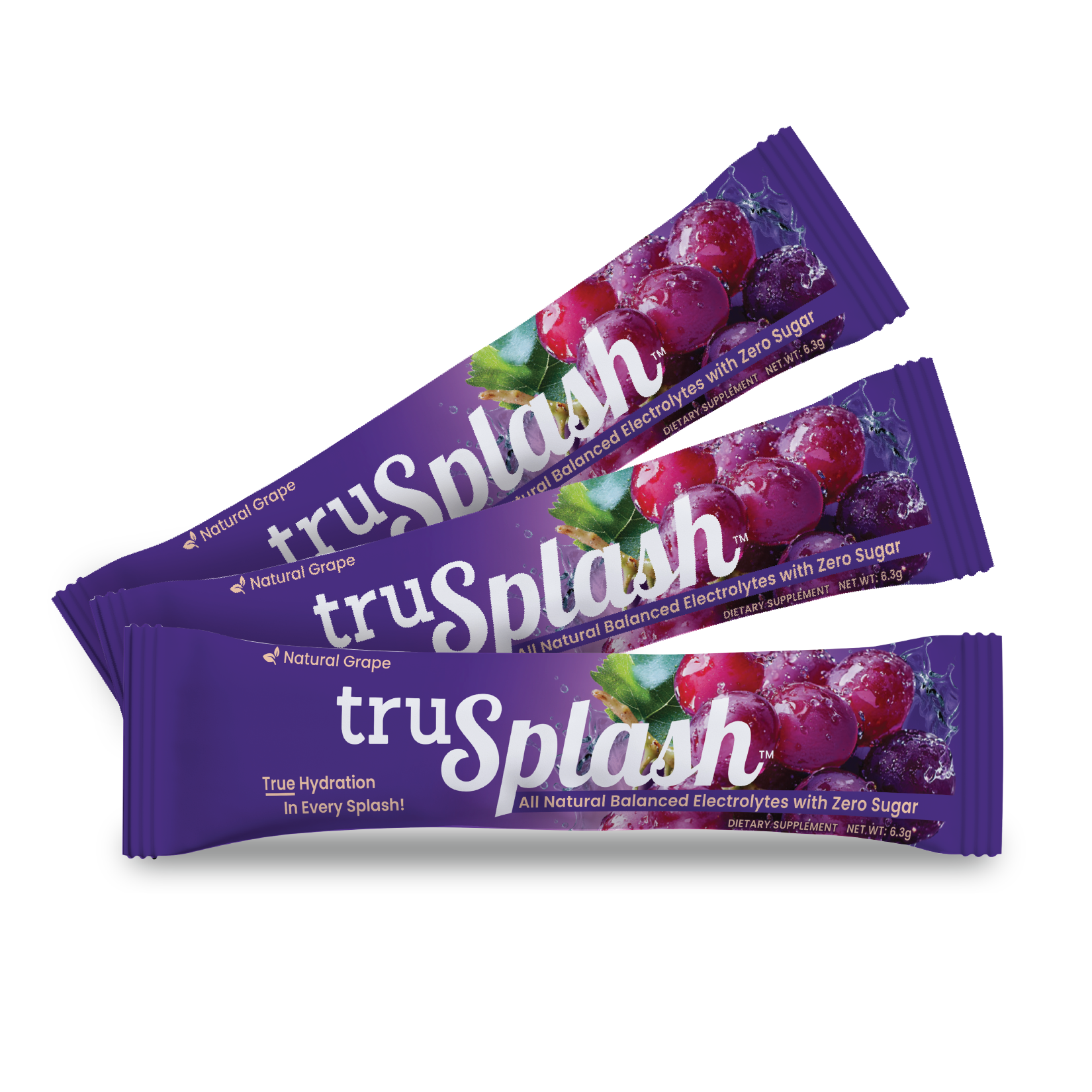 For Real On-The-Go Hydration. Introducing the truSplash Splash Pak, the ultimate hydration solution for on-the-go individuals. This resealable pouch contains 16 individual serving size truSplash sticks, each packed with therapeutic doses of balanced electrolytes, all natural flavors, and zero sugar.