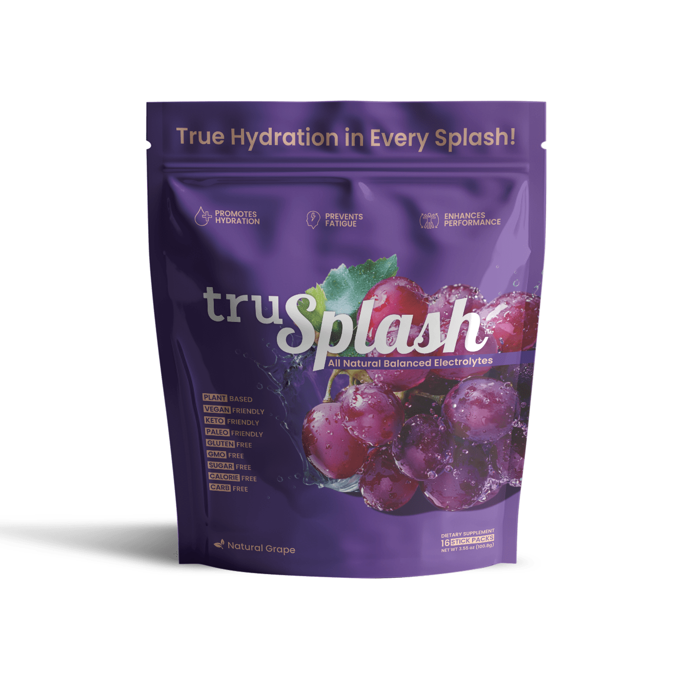 truSplash contains electrolytes that are required to maintain proper hydration, nerve and muscle function in the body. These essential nutrients play a vital role in minimizing fatigue, headaches, muscle cramps, and are necessary to move nutrients into cells and optimize physical performance. Drinking truSplash regularly replaces these electrolytes that are lost during periods of exercise and sweating or simply to support optimal body function.